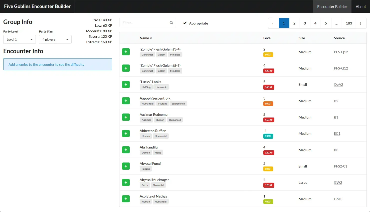 As part of investigating what things that are hosted on this website that people are actually using, I noticed a few people are still using the Pathfinder Encounter Builder that I created years ago. I have recently updated it to use React Hooks as well as gave it a shiny fresh coat of paint.