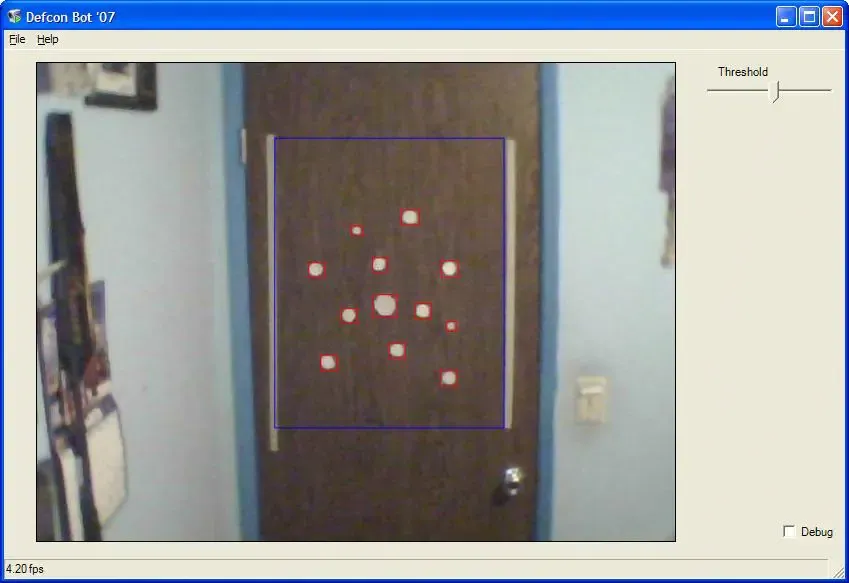 I'm mainly working on the software side of the project, since my mechanical & electrical engineering skills aren't as great as his, and I'm a much better programmer than him, and a cooler guy in general too. I wrote some software in C# that grabs the video stream from a webcam, detects the objects, and also some software that controls servos using the serial port. This will be used to aim the gun at the targets. The two pieces currently aren't hooked up together yet, as we don't have two servos powerful enough to hold the gun yet. However, here is a screenshot for those that are interested:
